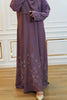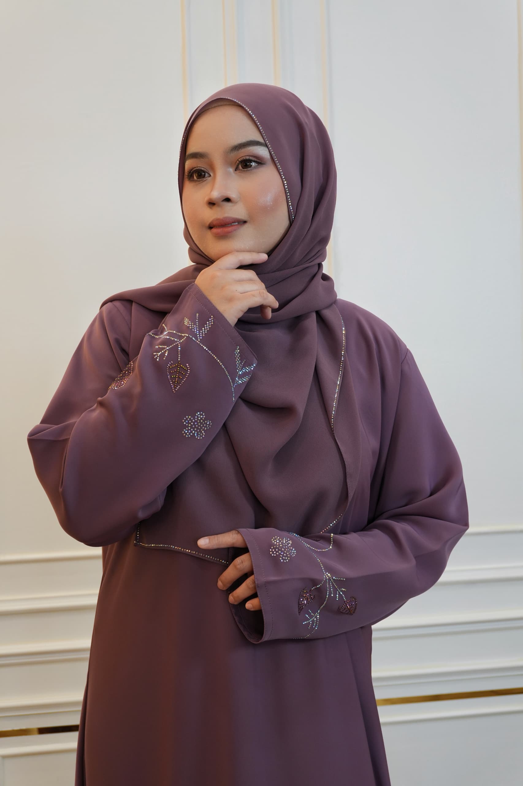 Crafted from premium Nidha fabric, the Abaya Amara Purple features a closed front design with a semi-umbrella cut, offering a graceful silhouette and comfortable fit. This elegant abaya comes with a free matching shawl, perfect for completing your modest look. To maintain its quality and vibrant color, handwash or dry clean only. Ideal for those seeking both style and sophistication in their Islamic wardrobe.