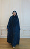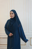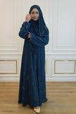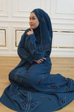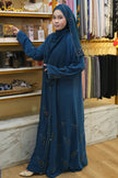 Crafted from premium Nidha fabric, the Abaya Bella Teal Blue features a sophisticated closed front design with an elegant A-cut silhouette. This abaya offers a graceful drape and comfortable fit, perfect for daily wear or special occasions. Included is a free matching shawl to complete your ensemble. For lasting quality, handwash or dry clean only.